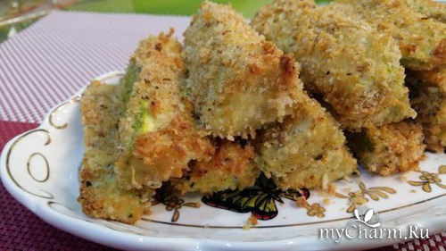 Палочки из кабачков в сырно-сухарной панировке.