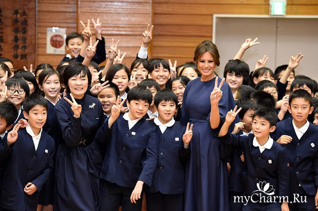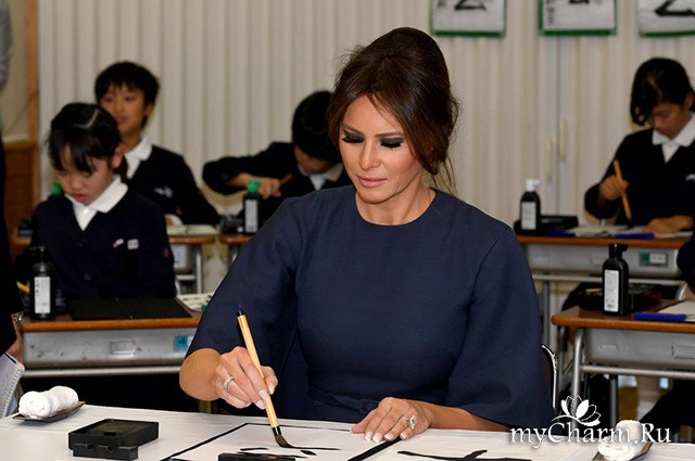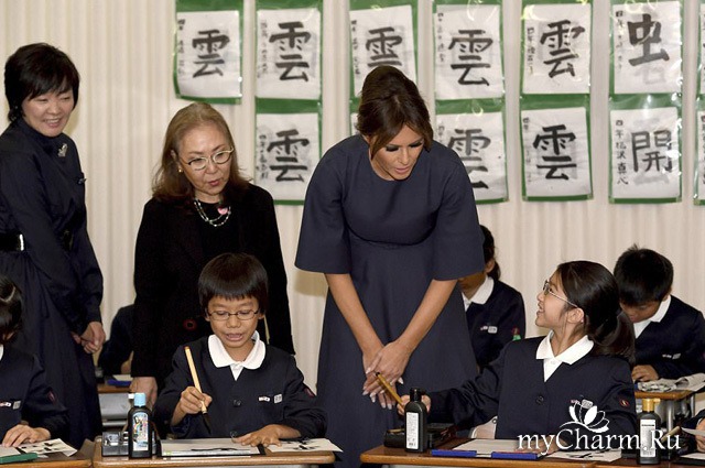 myCharm.Ru → Мелания Трамп посетила одну из школ Токио и взяла урок каллиграфии