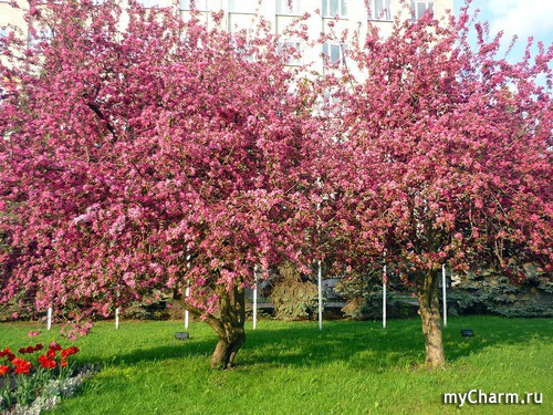 Девочки, помните, я вам показывала весной фото ооочень красиво цветущего деревца? Его у нас называют сакурой. Но сакура - это же вишня? А это плодоносит меленькими яблочками. Заглянула в Википедию: Сакура — название нескольких деревьев подсемейства Сливовые; зачастую обозначает вишню мелкопильчатую[4][5]... Читать полностью |