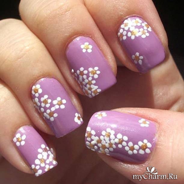 Можно цветочки, листочки и всевозможные узоры, но при условии, что они нарисованы при помощи точек. И я тут случайно вспомнила, что когда-то давно публиковала пост в маникюрной группе о том, что можно нарисовать при помощи дотса. Пост этот тут: https://www.mycharm.ru/post/14380/. Вдруг кого-то вдохновит.