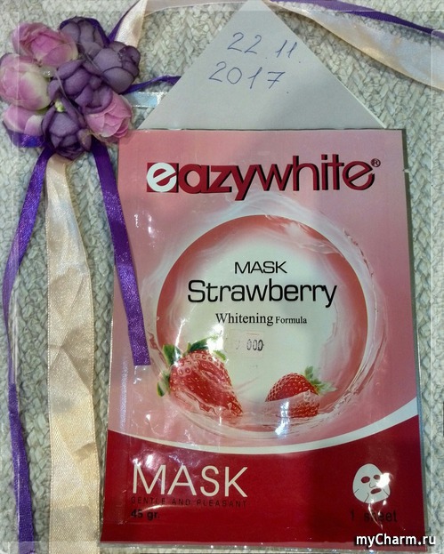 Полное название: Mask Strawberry Whitening Formula. Я перевела так: Клубничная маска "отбеливающая формула".