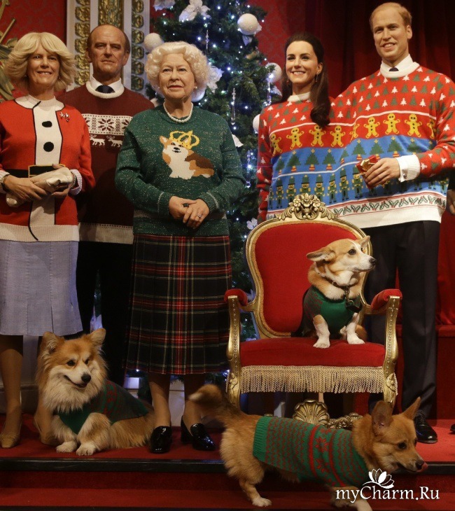 Если вас мучает вопрос, чем накормить, где рассадить и как уделить внимание 40 приглашенным гостям, попробуйте в этом году поступить как королева: пригласите только самых близких. Право отметить главный праздник в году имеют только прямые родственники Елизаветы и их законные супруги. В общем за праздничным столом рядом с королевой собираются примерно 30 человек. Кстати, на фото — восковые копии членов королевского семейства, переодетые в забавные свитера в рамках благотворительного проекта помощи детям.
