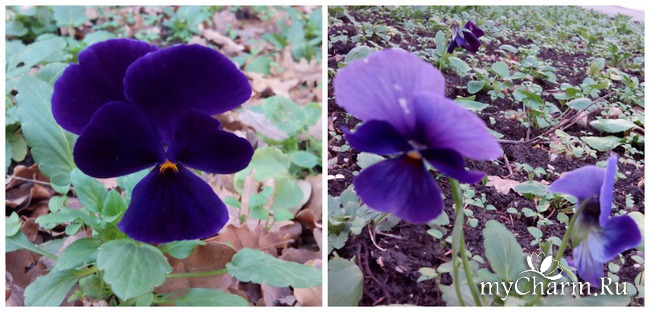 Несмотря на то что это январь, на клумбе перед домом цвели Анютины глазки.