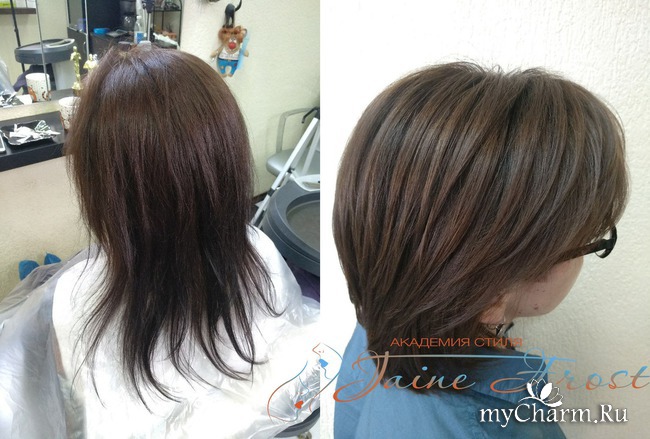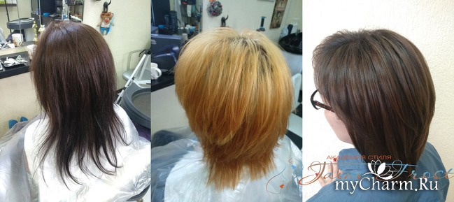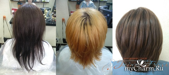 Для того, чтобы добиться всех поставленных целей, я выполнила стрижку, сложное мелирование в технике штопка-пласт, окрашивание корней и тонирование длины.