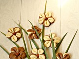 Теперь самый ответственный момент, будем делать цветы. Накладываем белую и шоколадную половинки друг на друга или наоборот. Соединяем вместе концы и прижимаем их фиксируя.