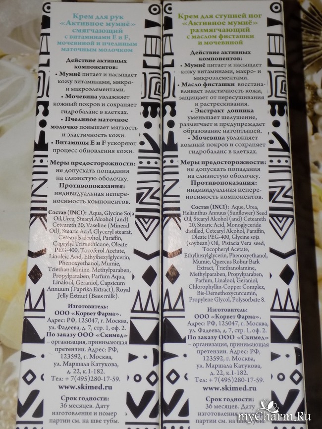 Крем для рук Смягчающий и Крем для ступней Размягчающий «Активное мумие»