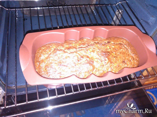 Отправляю кекс в разогретую до 180° духовку на 35 минут. Но всё же, ориентируйтесь по своей духовке проверяя спичкой или зубочисткой. Я делала на полторы порции ингредиентов и запекала 50 минут. Вот какой румяный кекс получился.