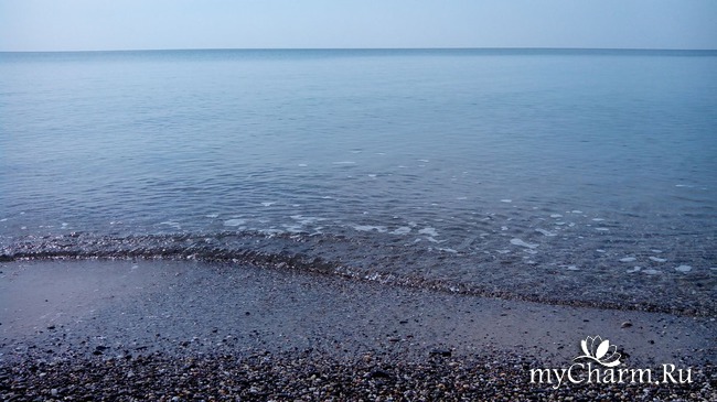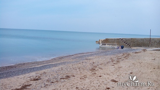 Стоит санаторий прямо на берегу моря. В первый день оно было просто волшебным - штиль и гладь.
