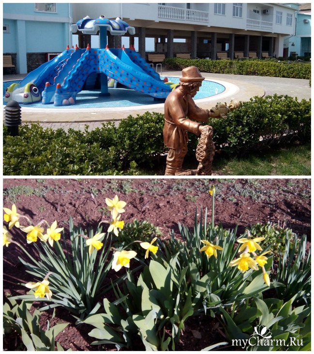 Вся территория очень ухожена, люди трудятся, что-то садят, поливают, готовятся с курортному сезону.