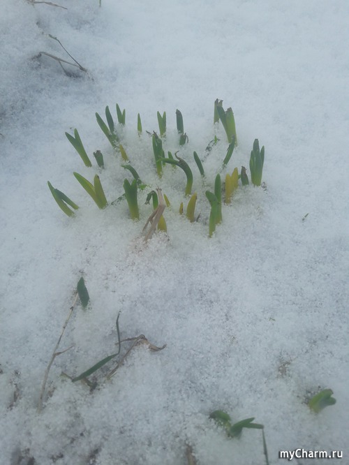 так трогательно смотрится зелень из-под снега
