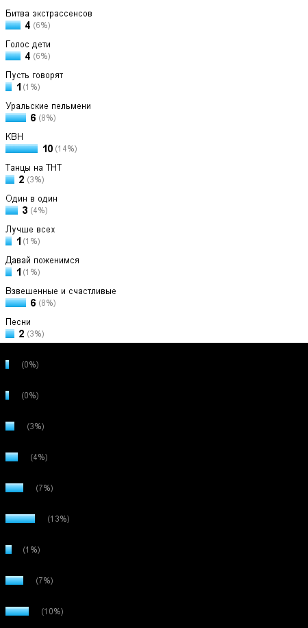Девченочки привет! Вот спорим с подружкой, какой телешоу лучше. Мне нравится передача: "КВН", "Танцы", а ей: "Где логика?", "Голос". А у Вас какая любимая телепередача. Для удобства сделала опрос, но могла и не учесть всех. За ранее большое спасибо за ответ! И конечно ВСЕХ-ВСЕХ с наступающими майскими праздниками! Всем весеннего настроения и супер-солнечной погоды! Читать полностью |