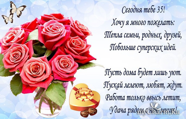 Сегодня 22 мая День Рождения у нашей подружки Инночки ( inn4ik83 ) Дивный возраст — 35. Это время расцветать, Время радостных затей, Воплощения идей. Время жить на сто процентов И летать от комплиментов, На ногах держаться прочно, Знать, чего ты хочешь, точно. Шествуй под руку с удачей, Стань счастливей и богаче. И летящею походкой За судьбою следуй четко... Читать полностью |