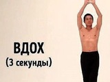 Начинайте медленно вдыхать на протяжении 3-х секунд, поднимая руки над головой. Затем с силой выдыхайте на протяжении 7-ми секунд, при этом напрягая все мышцы тела.
