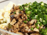 В практически готовый салат добавляю жареные грибы и мелконашинкованную зелень.