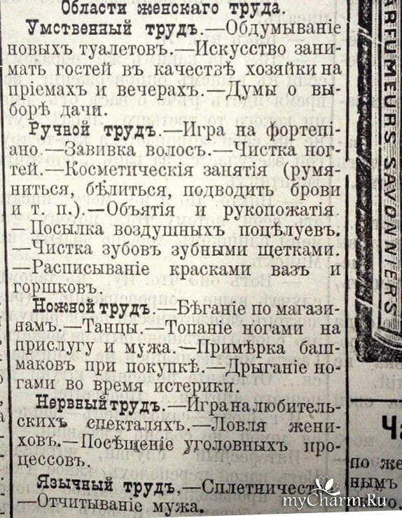 myCharm.Ru → Области женского труда. Мнение мужчин начала 20 века