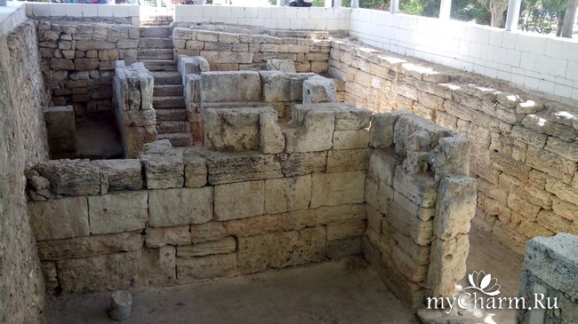 А вот это раскопки античности. Посмотрите, какие ровные стены. По предположению археологов, здесь чеканили монеты.
