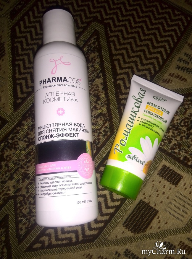 После умывания тоник и крема на ночь для кожи вокруг глаз и лица.