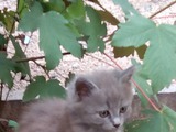 Недавно еще одно котенка-подростка подкинули. Коты его загнали на дерево, мы его оттуда еле сняли.