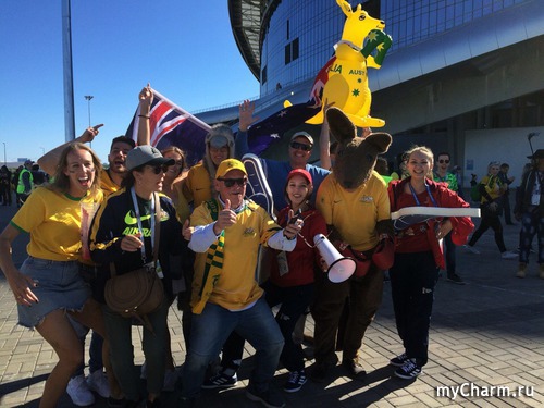 Мы балдели от австралийцев. У них самый настоящий культ кенгуру. Они приходили компаниями и в каждой было это надувное животное. Я встретила болельщика, у которого даже на носках были изображения кенгуру.