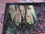 Убираем рыбу с огня, аккуратно снимаем с решетки и выкладываем на тарелочку. Можно угощаться.