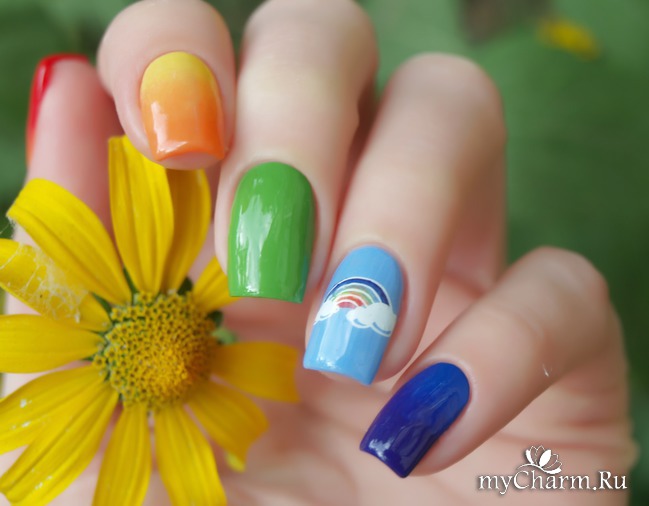 Ну и в конце покажу немного цветочных и ярких маникюрчиков в честь юбилея флешмоба!
