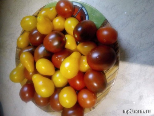 Помидорки черри нарезала штучек 10, если обычные пару штук хватит