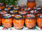 Раскладываем кипящий салат по банкам и закупориваем.
