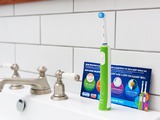 Шаг 1. Ополосните насадку щетки, нанесите небольшое количество пасты (размером с горошину). Включайте зубную щетку только после того как поднесете ее к зубам. Это предотвратит разбрызгивание зубной пасты.