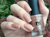 Текстура лака песок, поэтому такие лаки обычно используют без топового покрытия. У меня нанесен один слой + подложка нюдового оттенка. Финиш здесь матовый.