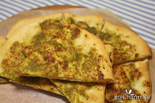 ? Сегодня приготовим вкуснейшую ароматную фокаччу. Такую тонкую факаччу впервые попробовала в кафе, она мне очень понравилась. Верх смазываю песто, можно полить маслом оливковым, посыпать розмарином и морской солью, или добавить помидоры, или ветчину) В любом случае будет очень вкусно. Такого количества ингредиентов хватит на 2 небольших фокаччи. Очень вкусно с помидорным салатом)