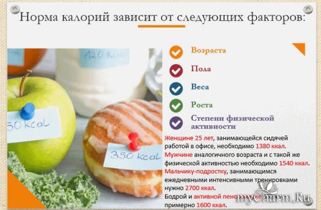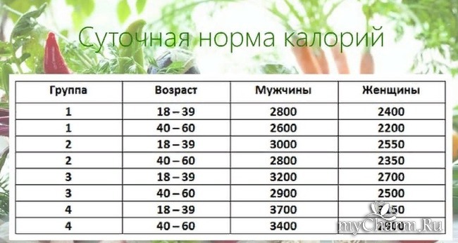 - подчитывать калории съеденные за целый день. Здесь тоже было бы хорошо составить таблицу. Норма для человека ( для женщины) – 1600 каллорий, это с таким хорошим запасом.
