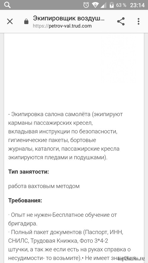 И тут мне попало на глаза объявление о вахтовому методе, г. Москва:
