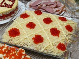 Перед подачей, его, конечно же, украшаем по своему вкусу, я сделала майонезную сеточку и украсила икоркой. Простенько и со вкусом)