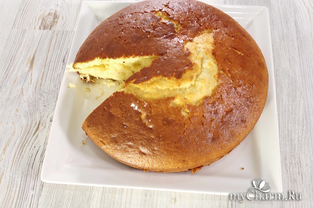 Готовому кексу даем остыть. Кекс будет вкуснее если полить сгущенкой.