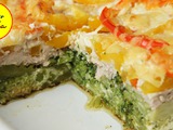 Все это заливаем омлетом и выкладываем сверху нарезанный болгарский перчик.