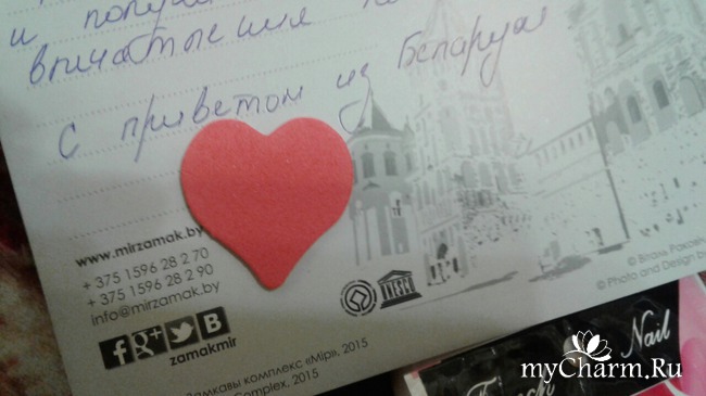 А на одной открыточке Наташа написала для меня кучу приятностей и снова сердечко!