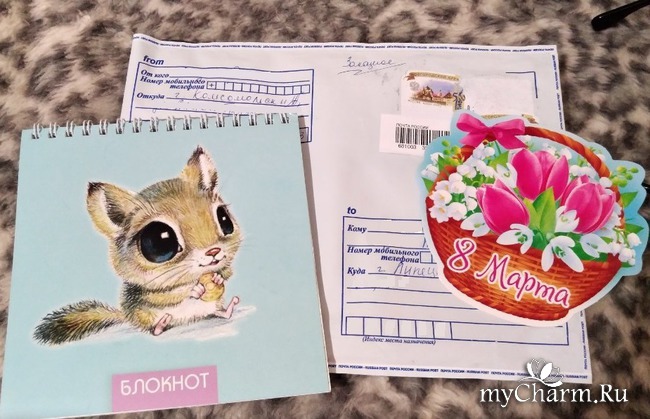 Сколько устраиваю обмены, а сама участвовать перестала, из-за нехватки времени на отправку писем. Но радость не прошла стороной и к весеннему женскому празднику прилетел мне конвертик из далекого для меня Комсомольск-на-Амуре. Вот так радость была. Эмоции такие, что не передать.