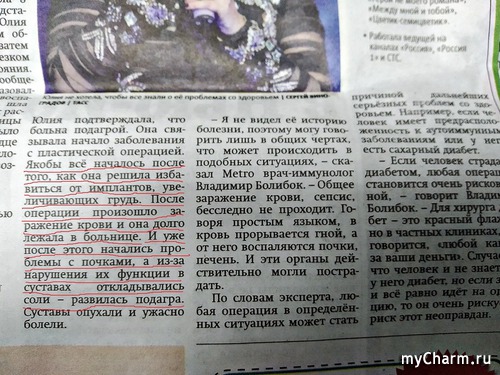 В некоторых источниках пишут, что проблемы со здоровьем у нее начались после неудачной операции по увеличению груди. Т.е. стремление быть красивее привело к серьезным проблемам и вот такому исходу.