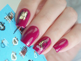 Вначале несколько слов о самих слайдерах. Мне понравились они в работе, пленка тонкая, но прочная, слайдеры не рвутся, легко укладываются на ноготь и легко корректируются. Принципы работы со слайдерами я думаю многим понятны, поэтому описывать подробности я не стану. Покрывала слайдеры тонким слоем аквабазы, а затем обычным топом. Аквабаза предотвращает слайдер от размытия топом и сохраняет голографию рисунка. Еще хорошо то, что слайдеры можно использовать на любой фон.