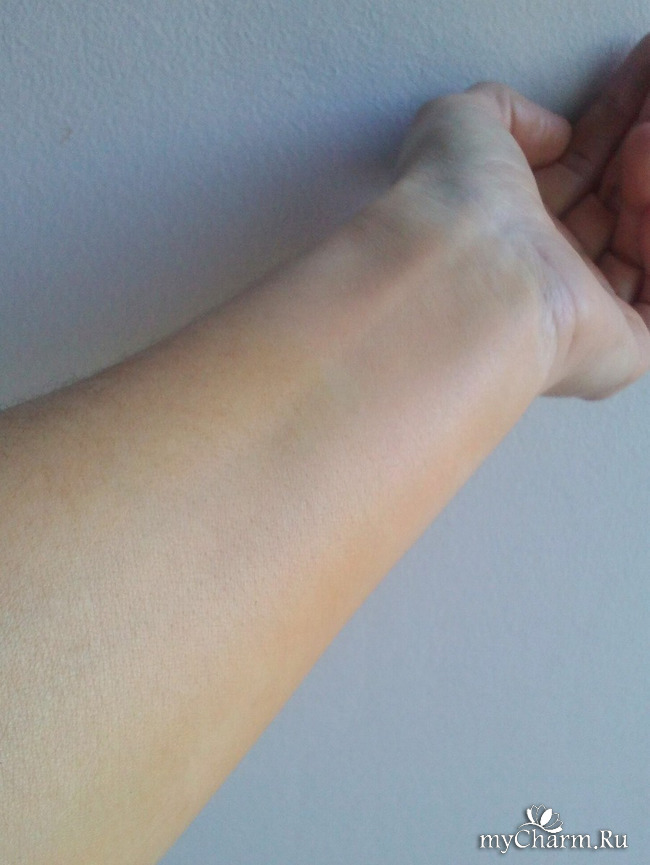 Здесь оба флюида растушёваны на коже руки. Придают лёгкий оттенок загара, очень натуральный.