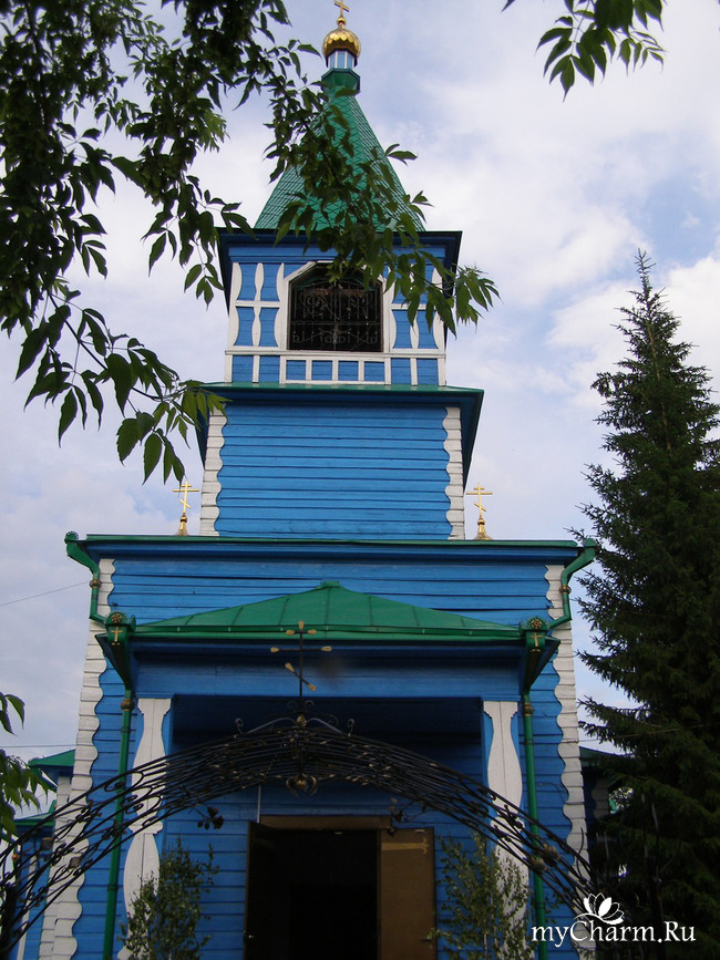 Я с дочерью несколько лет назад ездила в это место, дорога туда непростая, однако мы добрались благополучно. Кругом сплошной лес. Церковь небесно-голубого цвета, так празднично гармонировала с небом, священник очень приветливый. Мы затем еще съездили к источнику в лес.