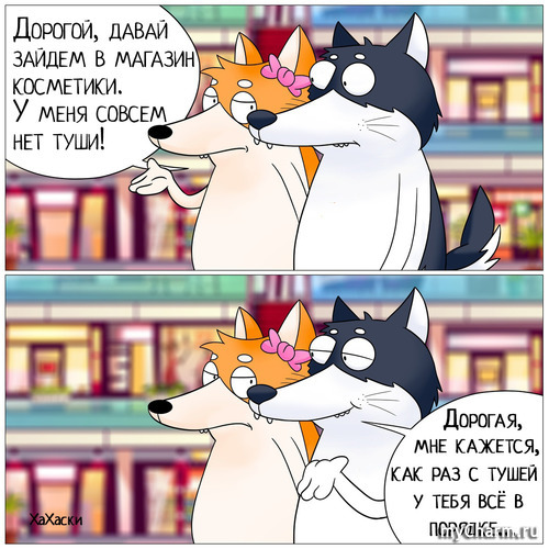 ПОХОД В МАГАЗИН Все знают, что такое ходить по магазинам с женщиной. Если ты - женщинин мужчина. Это значит, что вы изначально с ней идёте, потому что "Мне просто шарфик надо купить", а по итогу часа три слоняетесь по торговому центру, пока ваша женщина заходит в абсолютно каждый магазин. И с шарфиками, и с сумочками, и с туфельками, и конечно же, с косметикой... Читать полностью |