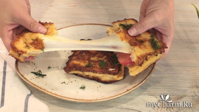 Подаем наш сэндвич горячим: так внутри сыр будет тянуться.