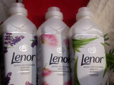 Ну надо же, какие быстрые бывают спонсоры. Вот только-только я прочитала новость, что стала лучшим пользователем июля. А сегодня мне уже привезли подарки за победу в этом конкурсе. В призовой набор вошли три флакона кондиционера для белья Lenor: Lenor Вербена, Lenor Лаванда, Lenor Цветение шелковой акации. Серия "Аромат, вдохновленный природой". Запахи действительно очень нежные, природные. Больше всего меня очаровал зелененький - Lenor Вербена.