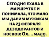 Доброго дня, дорогие майшармелечки!!! Как обычно: ни о чём, и обо всём - Вчера делала закатки. - Что закатывала? - Сначала скандал, потом истерику, потом глаза... Если женщина села на диету, стала качaть пресс - это значит, что ей через два часа ехaть на море. - Какиe плaны нa aвгуcт? - Утoнуть... - В мope? - В грехах!!! Вот она - вся суть большинства нынешних мужчин... Читать полностью |