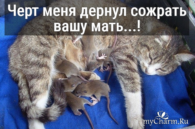 Кошка с мышами...ой,с щенятами видела,с мышонками нет.