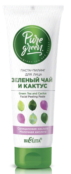 Скоро совсем похолодает, и как говорят, придет пора пилингов - "Pure Green" Паста-пилинг для лица "Зеленый чай и кактус" 75 мл. (Белита) около 250 руб