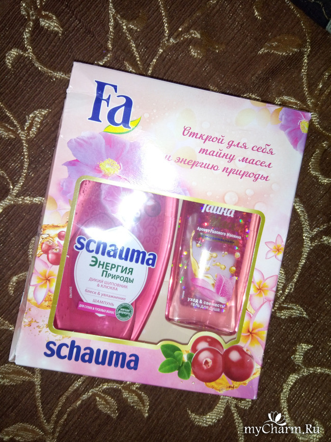 Только что курьер доставил нам посылочку с призом. Здесь коробочка с двумя средствами: шампунь Shauma Энергия Природы и гель для душа Fa Тайна масел - розовый жасмин. Интересный получился набор - ароматный уход за волосами и телом Огромное спасибо за интересные конкурсы и классные призы