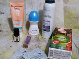 На фото ниже - шариковый дезодорант - анти-перспирант, дезик как дезик, нормальный. Футляр от помады Дзинтарс, купила, когда была в Прибалтике. Помада мягкая, губы не сушит, но цвет не очень подошел - слишком розовый на губах. Поэтому приглушала сверху более сухой и темной помадой, тандем удался.