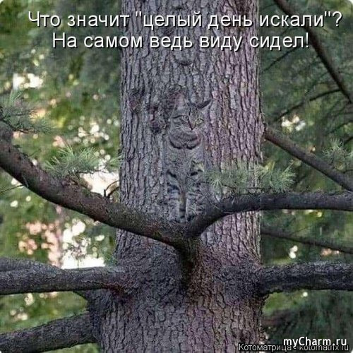 Кстати. что там сидит кот на дереве, увидела раза с пятого))) Вот что значит, удачная маскировка!